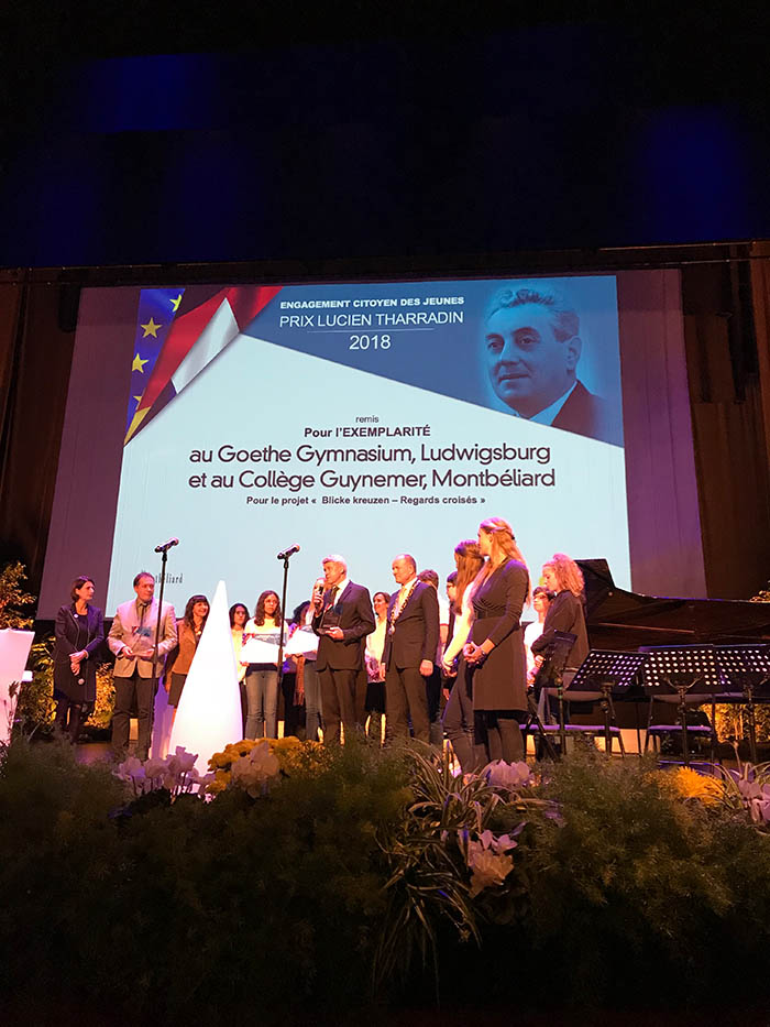 Les écoles partenaires franco-allemandes Goethe-Gymnasium Ludwigsburg et Collège Guynemer, Montbéliard, ont reçu le prix à titre d'exemple pour leur projet exceptionnel et exemplaire Blicke kreuzen – Regards croisés, dans lequel elles comparaient les lettres du soldat allemand Adolf Mann de la Première Guerre mondiale aux lettres du militaire français Robert Fernier.